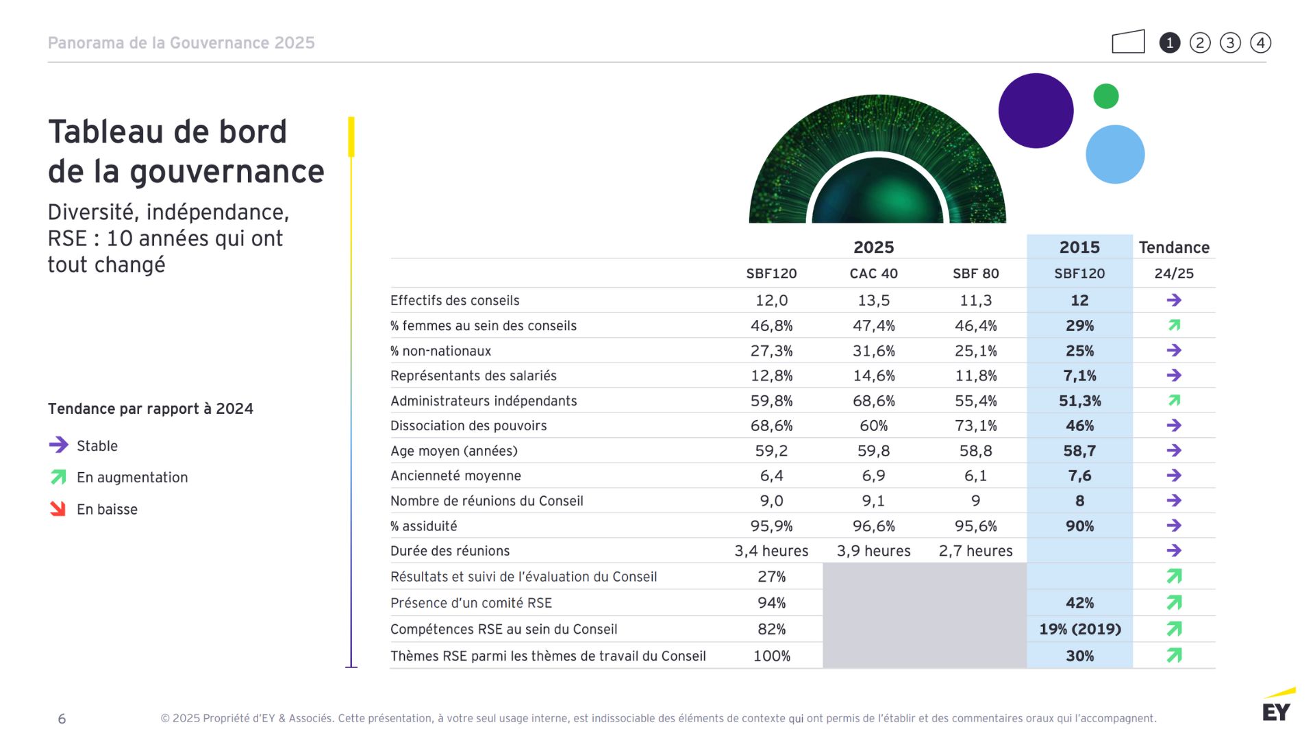 À travers des données exclusives sur les pratiques des conseils d’administration du CAC 40 et du SBF 120, l’étude met en lumière les progrès réalisés, les tendances de fond et les défis de la gouvernance de demain.